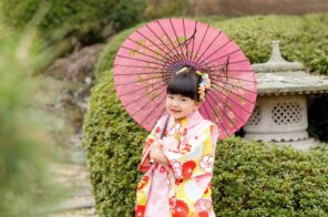 撮影するなら、断然、今がお勧めです!七五三 衣装展示会 開催中!|春の庭園で記念撮影♪竹内写真館