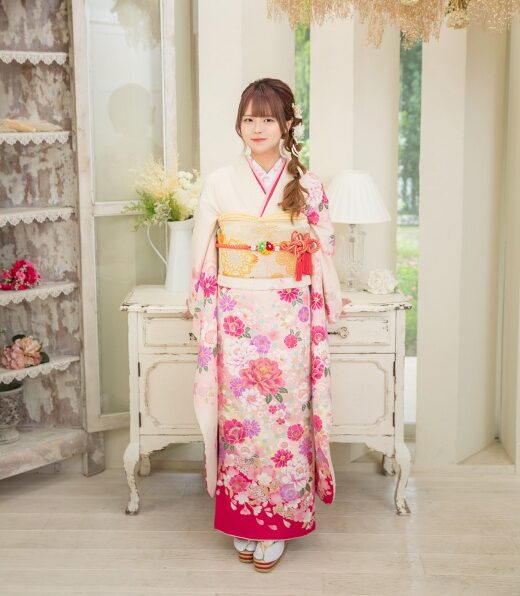 前撮りした振袖もピンクと白の可愛らしい振袖でした♪