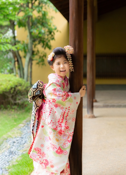 白の舞妓衣裳は、庭園や和室で撮影。笑顔がカワイイ💕