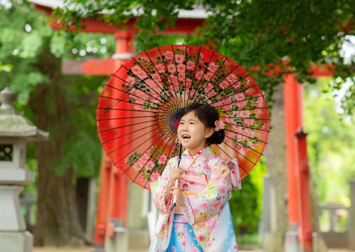 水色のお着物では、隣の神社へロケ撮影にも行ってきました。
