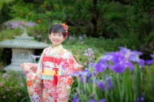 舞妓姿で日本庭園の七五三撮影|七五三写真なら埼玉の竹内写真館